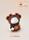 ふわふわ素材でぬいぐるみを優しく包み込む、“トナカイ着ぐるみ”風のホリデーアイテム。